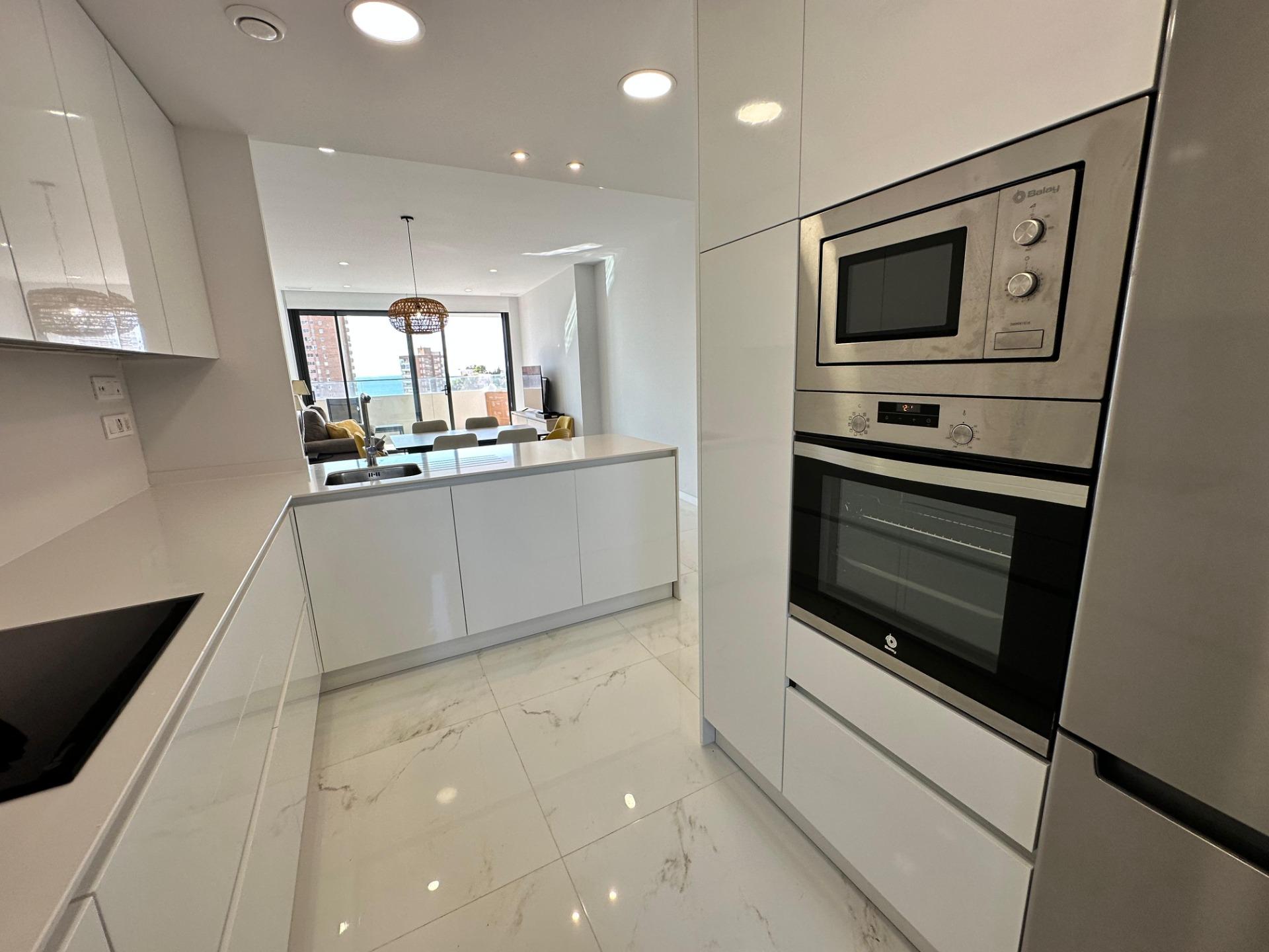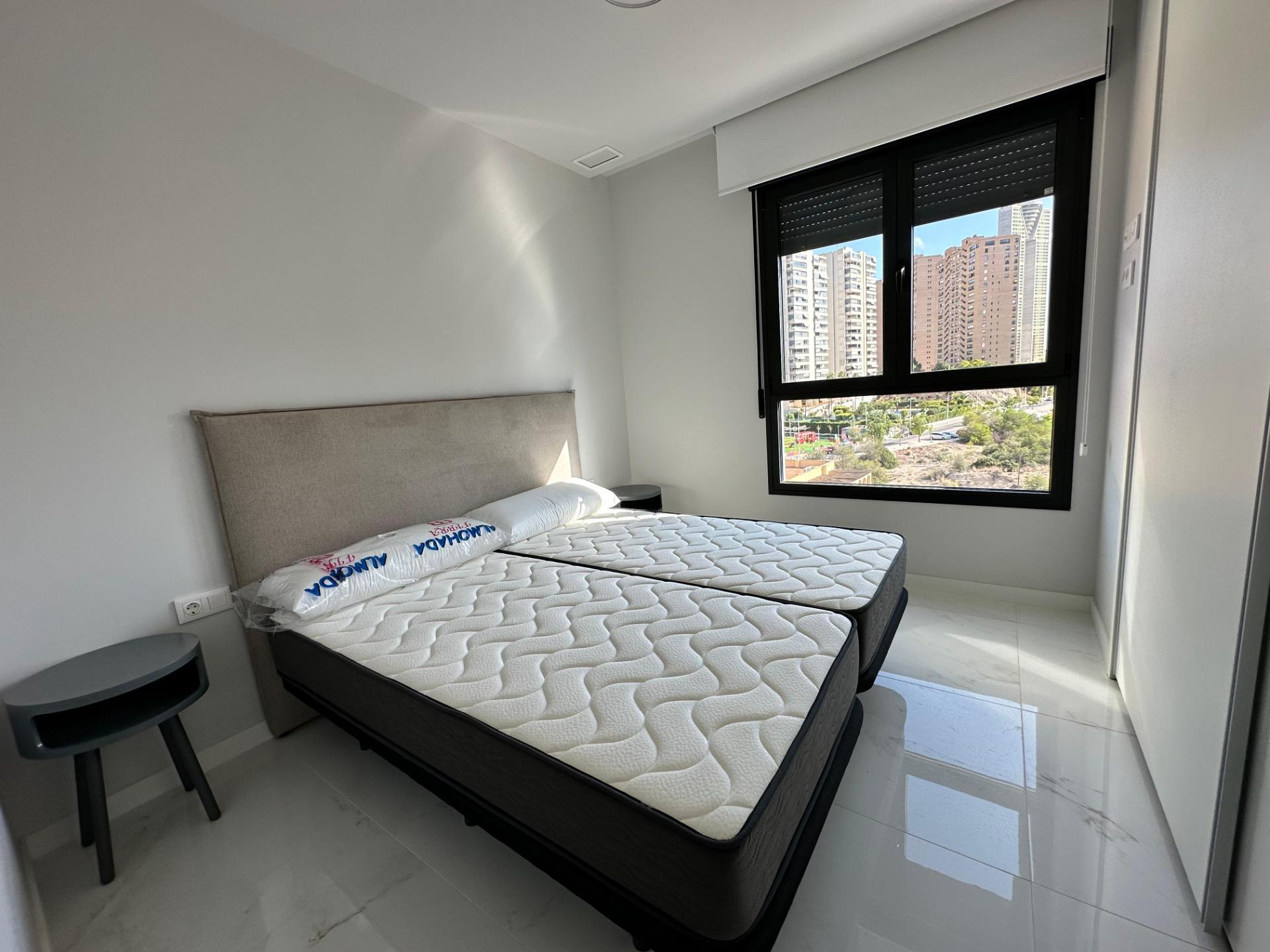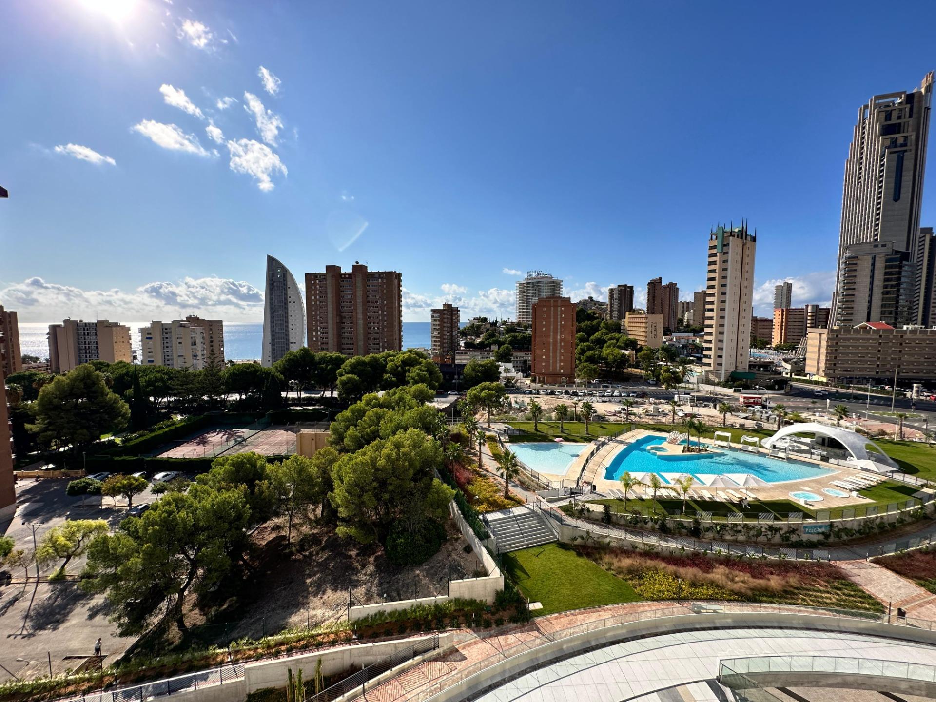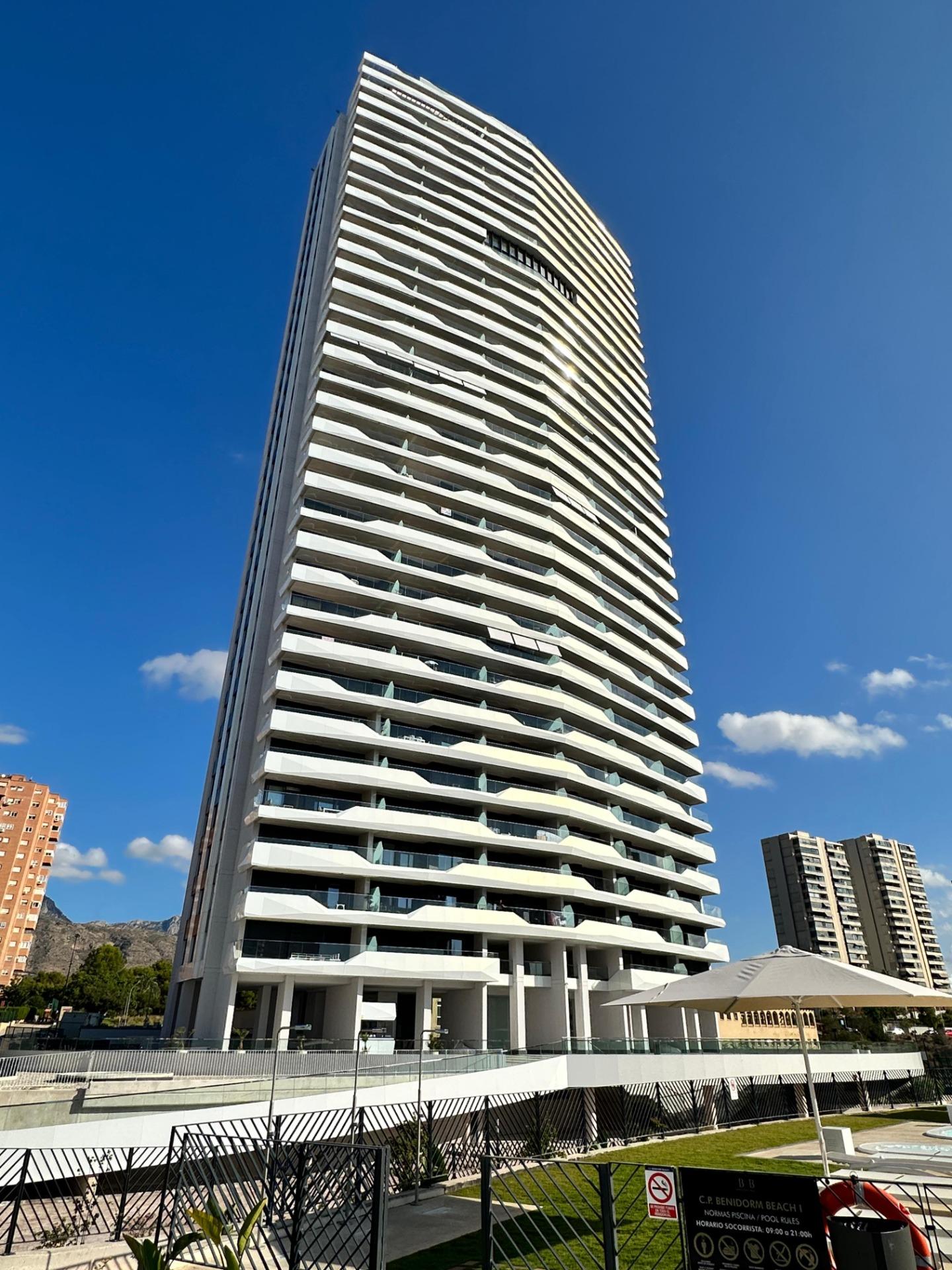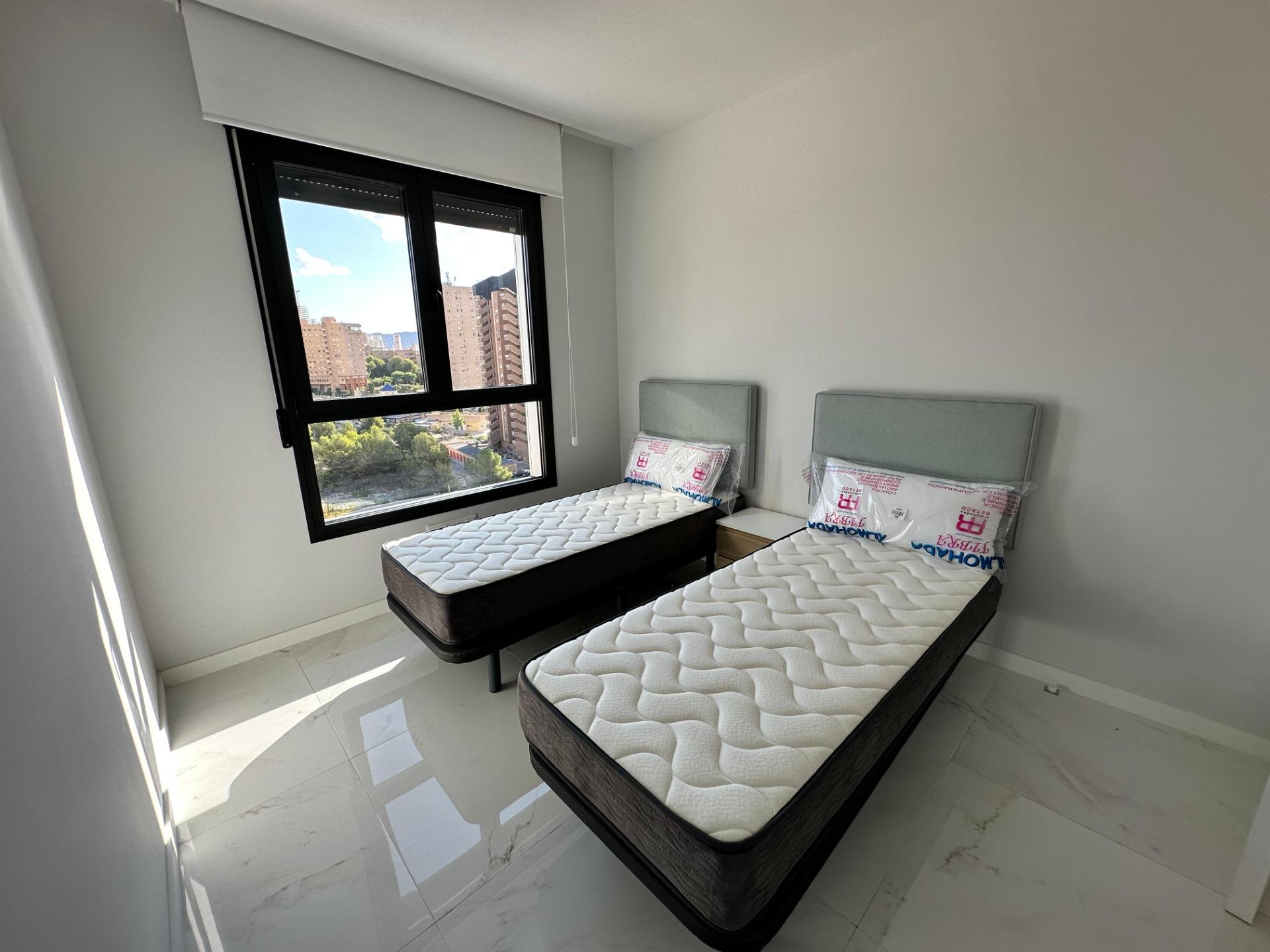 Gran Oferta. Apartamento nuevo a estrenar en Residencial Benidorm Beach.~Listo para entrar a vivir, todo nuevo.~Con 3 dormitorios, 2 baños, gran terraza, garaje.~Urbanización con piscinas, jacuzzi, pistas deportivas, gimnasio, sauna y mucho mas….~