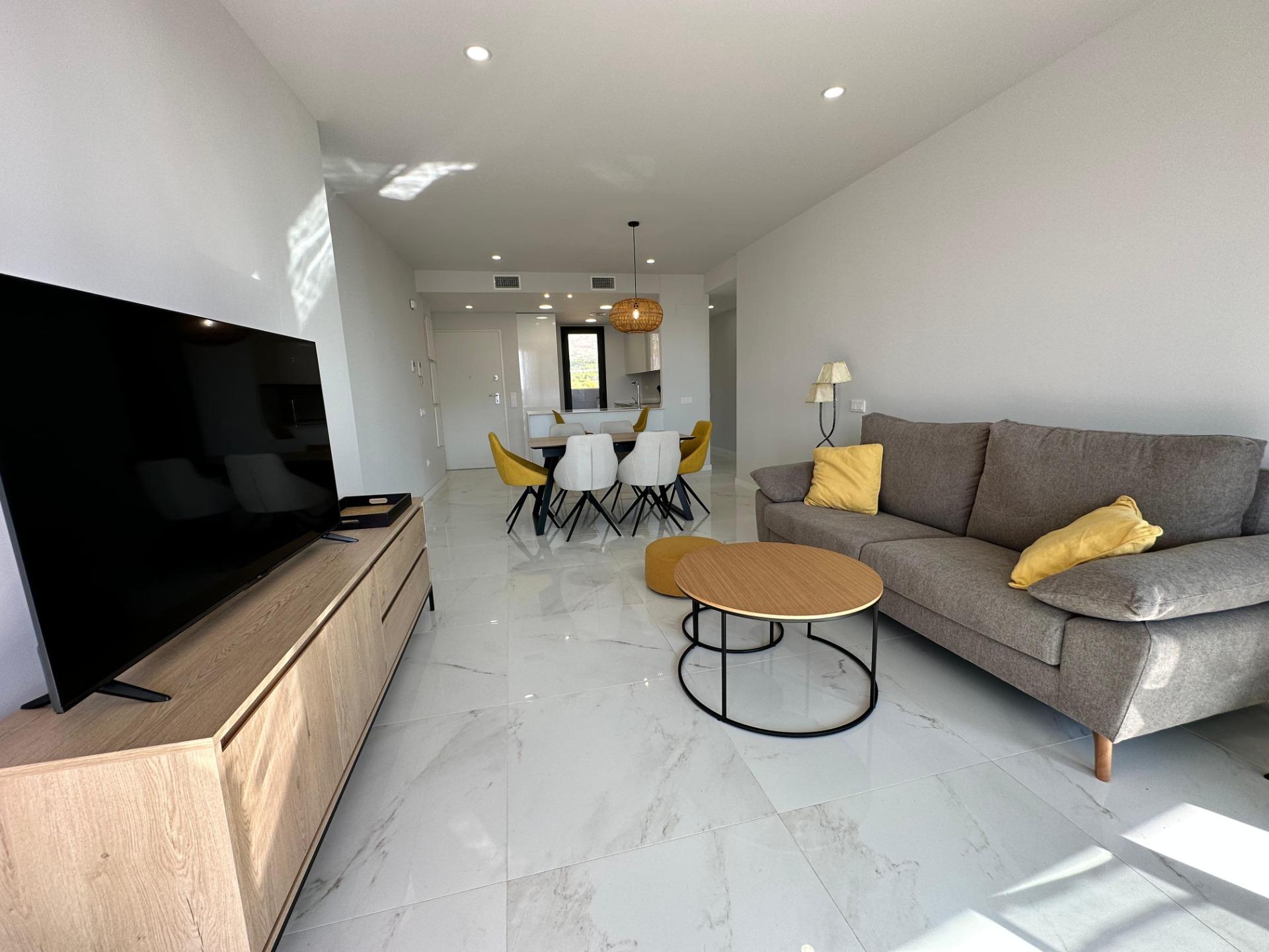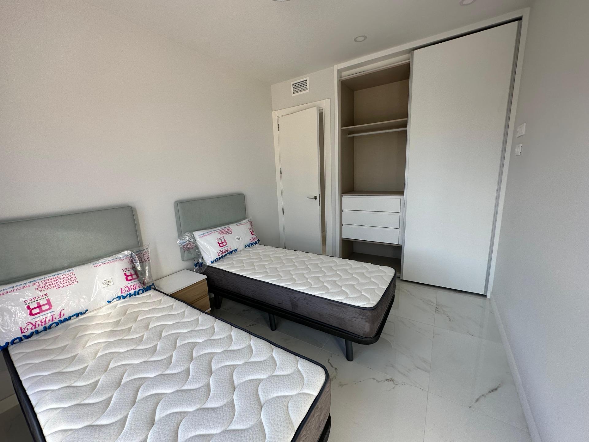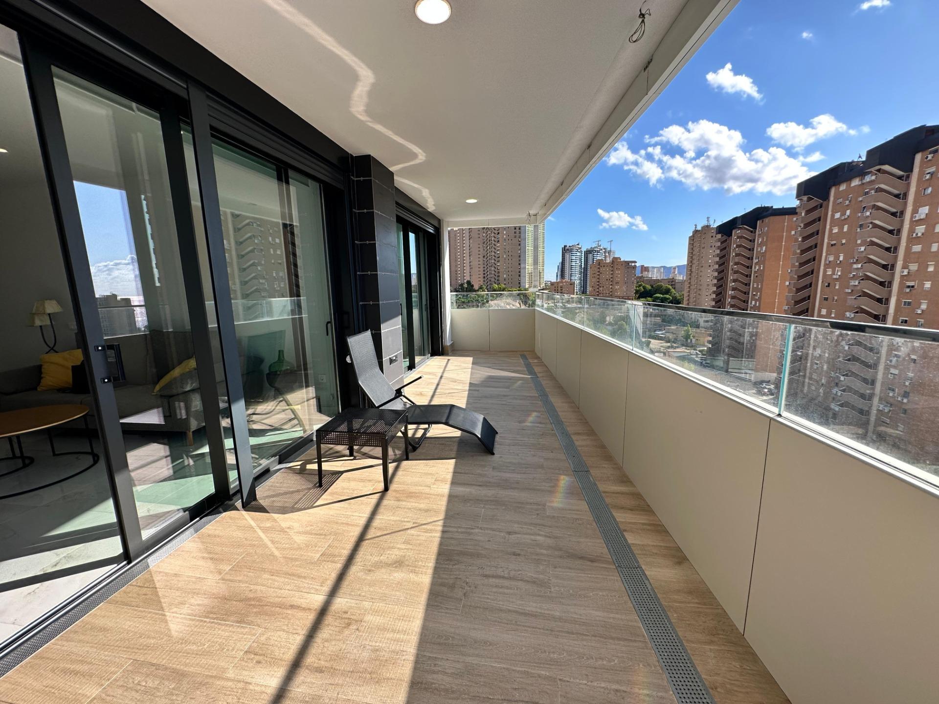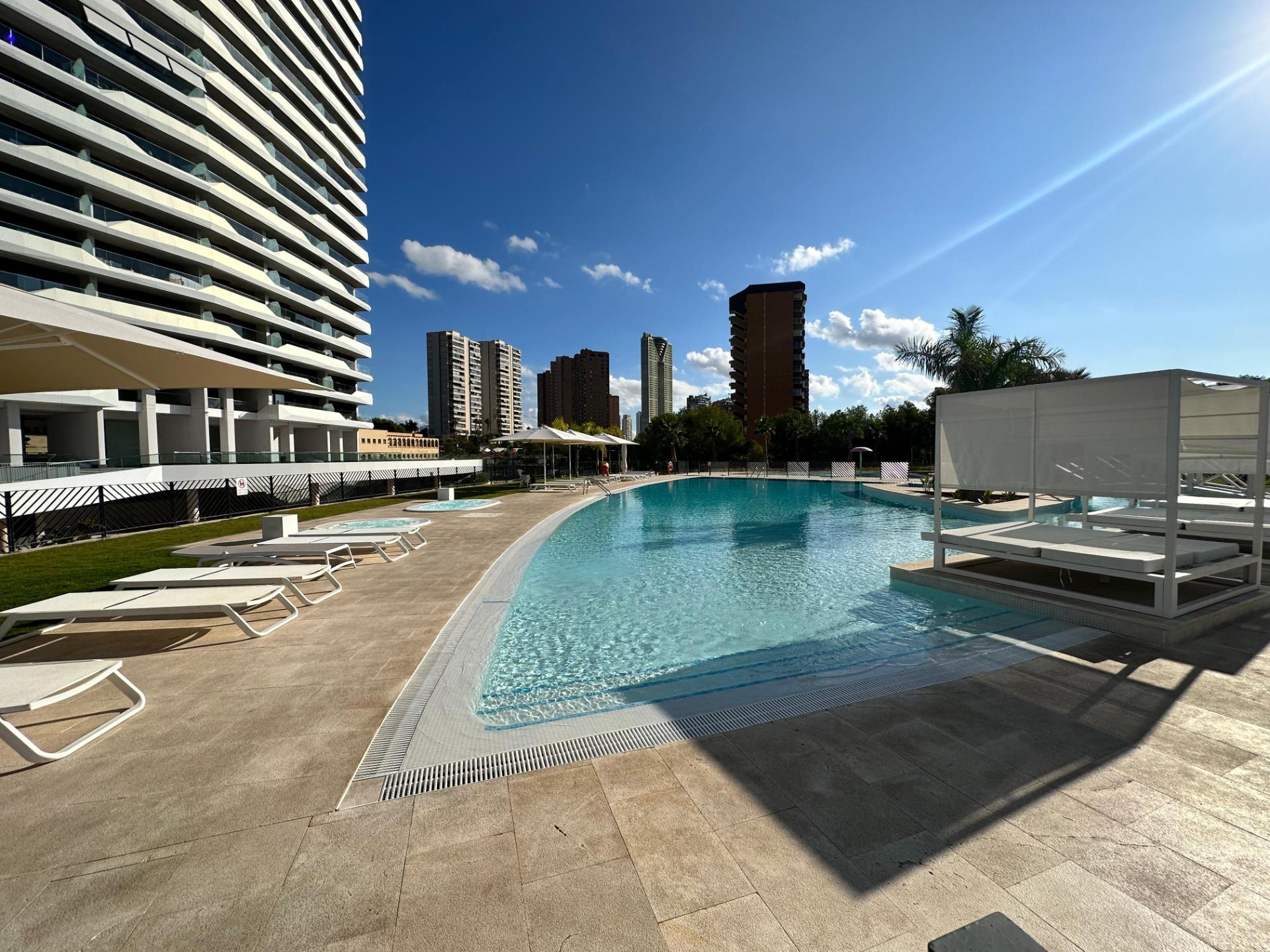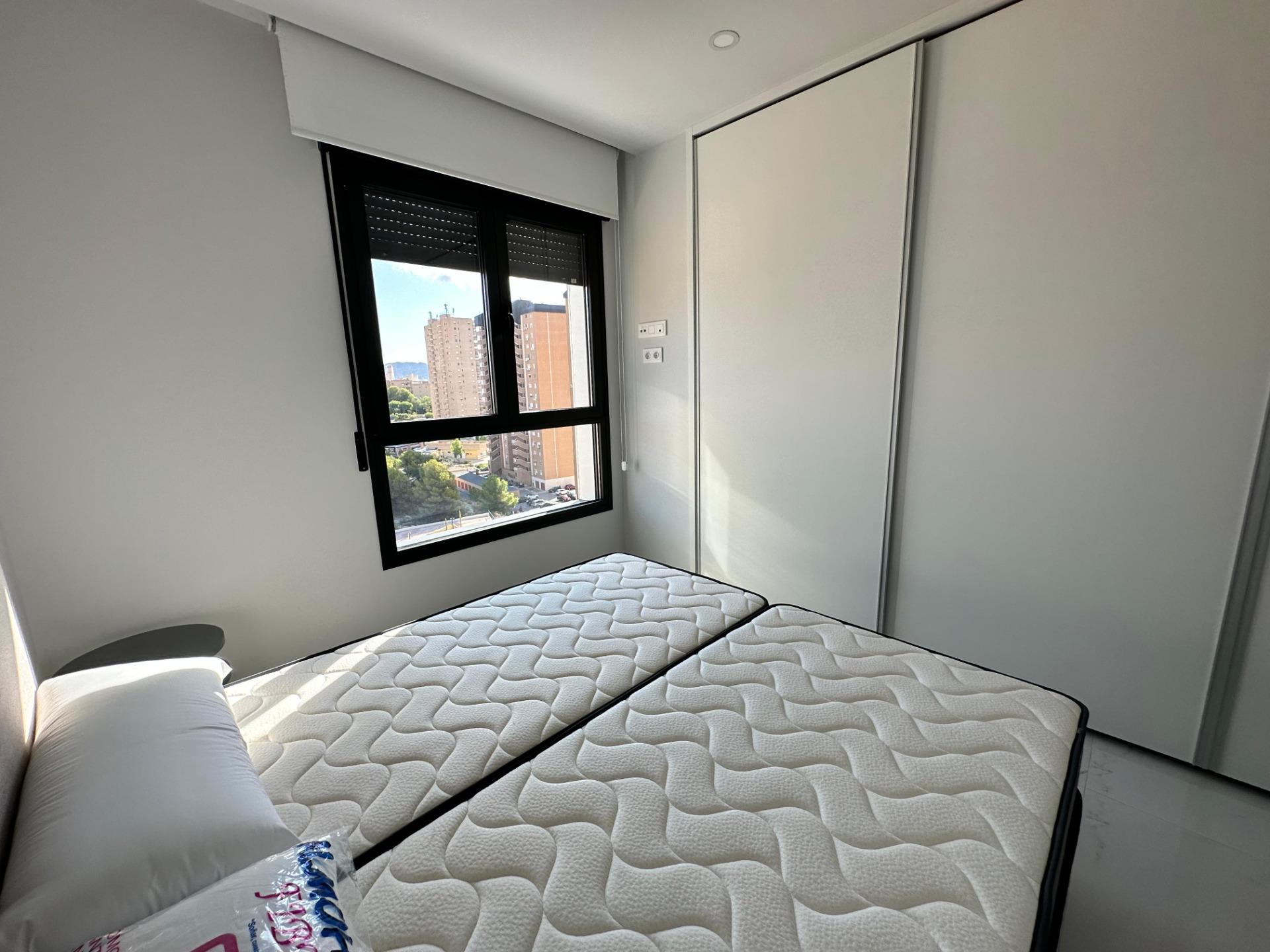 Gran Oferta. Apartamento nuevo a estrenar en Residencial Benidorm Beach.~Listo para entrar a vivir, todo nuevo.~Con 3 dormitorios, 2 baños, gran terraza, garaje.~Urbanización con piscinas, jacuzzi, pistas deportivas, gimnasio, sauna y mucho mas….~