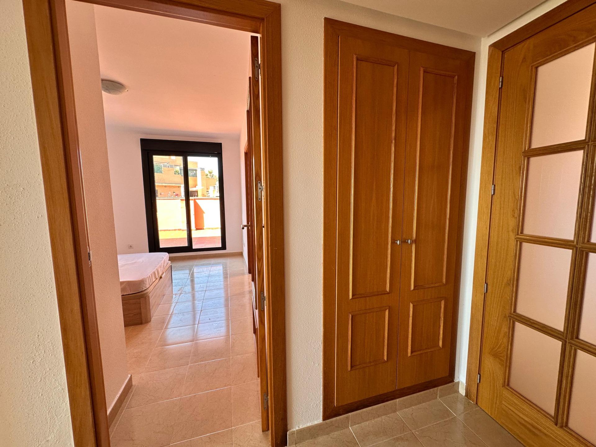 Amplio apartamento con gran terraza con 2 dormitorios, 2 baños, cocina independiente con salida a la terraza y salón con salida a la terraza. Vistas bonitas al mar y al paisaje.~Urbanización con piscina, césped natural y zona infantil. Garaje y trastero no están en el precio pero le podemos ofrecer a parte.~