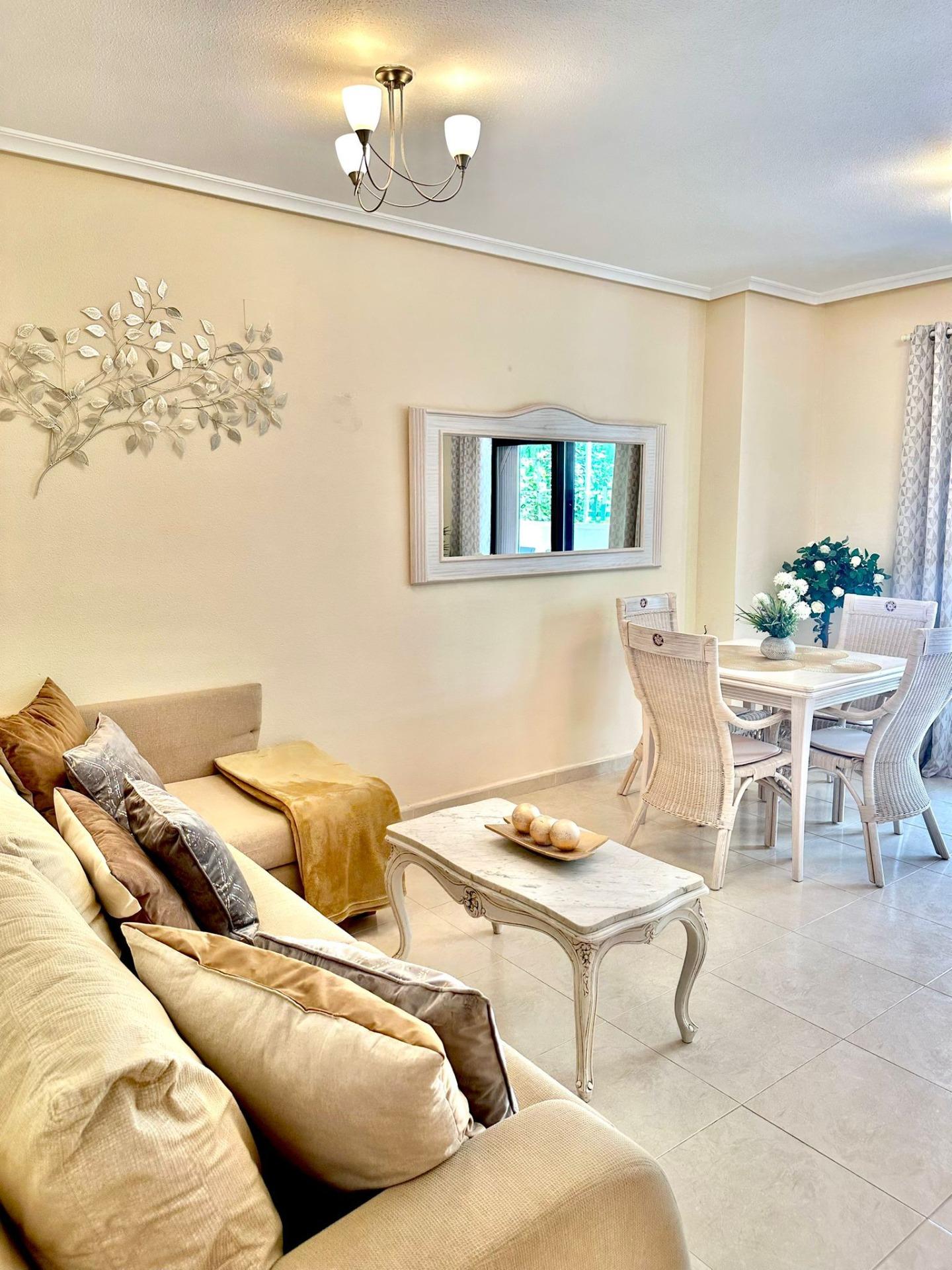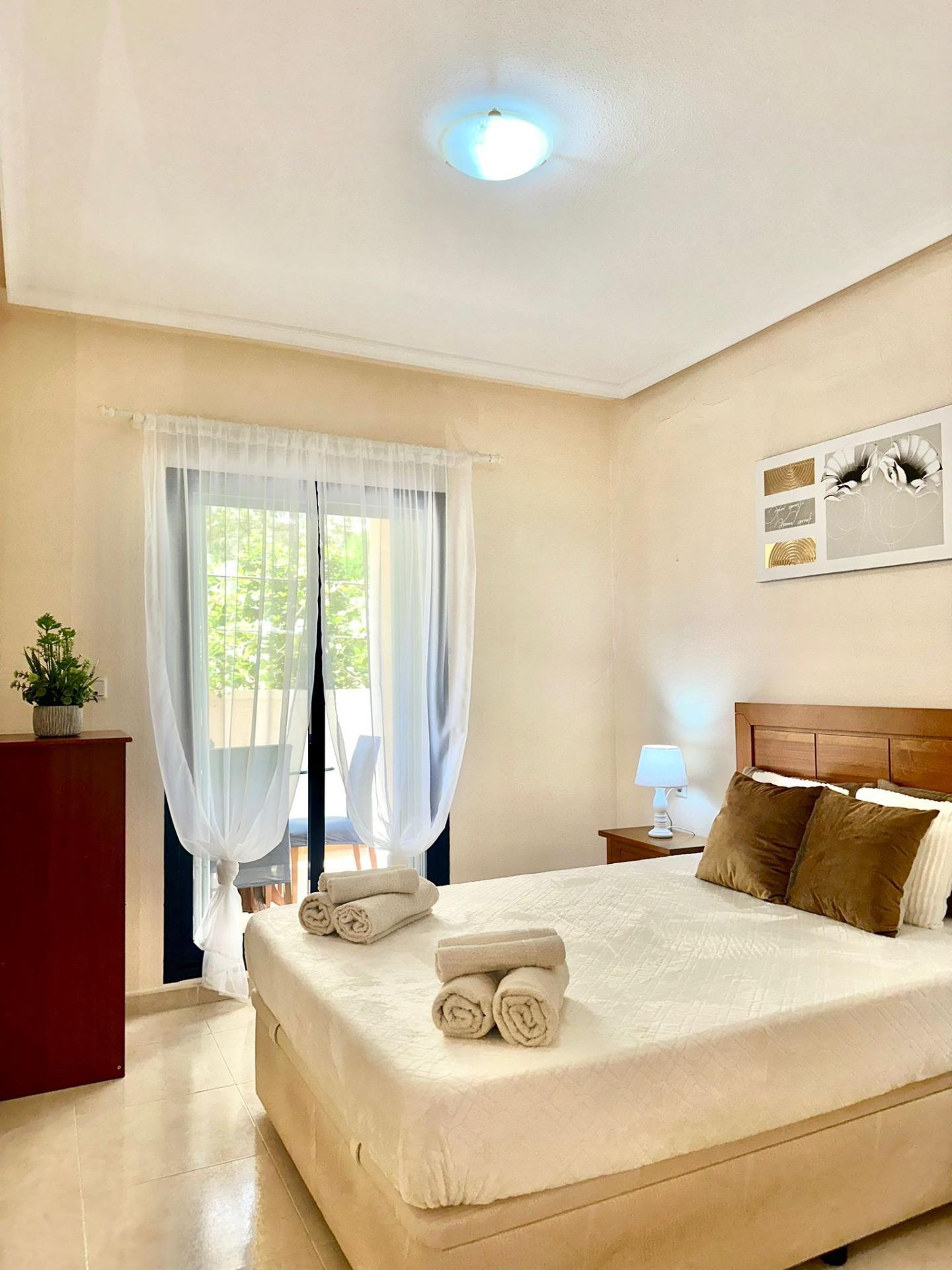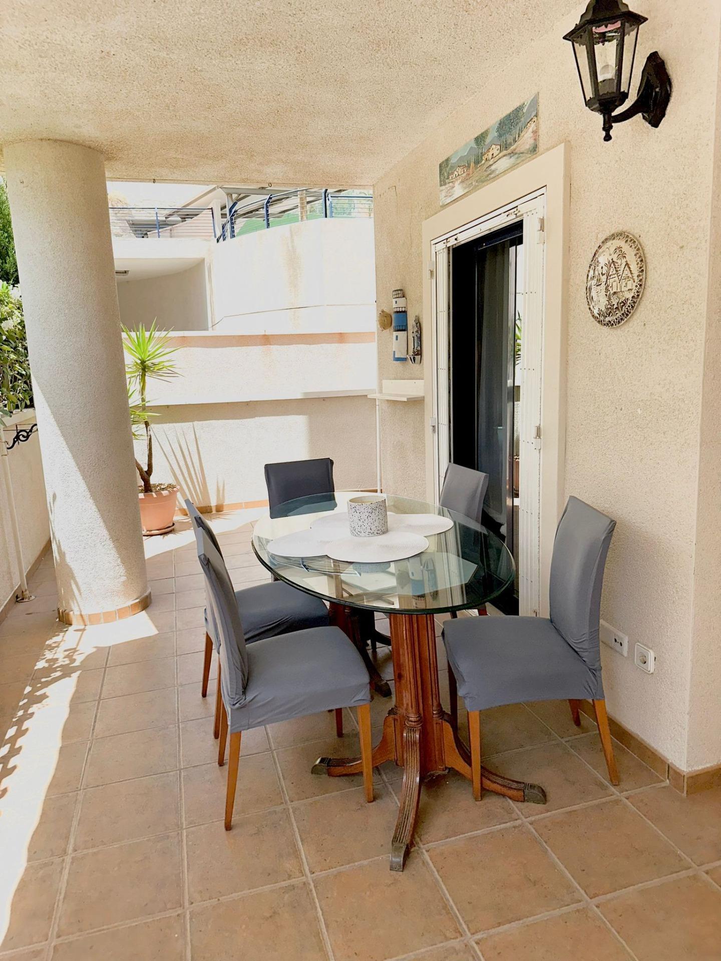 Se alquila apartamento en planta baja con gran terraza en Residencial Azaleas. Piso de 2 dormitorios con 2 baños, cocina con galería, salón comedor con gran terraza. Urbanización con parking, piscina comunitaria, pista de tennis, zona infantil.~Contrato para 6 meses prolongable~